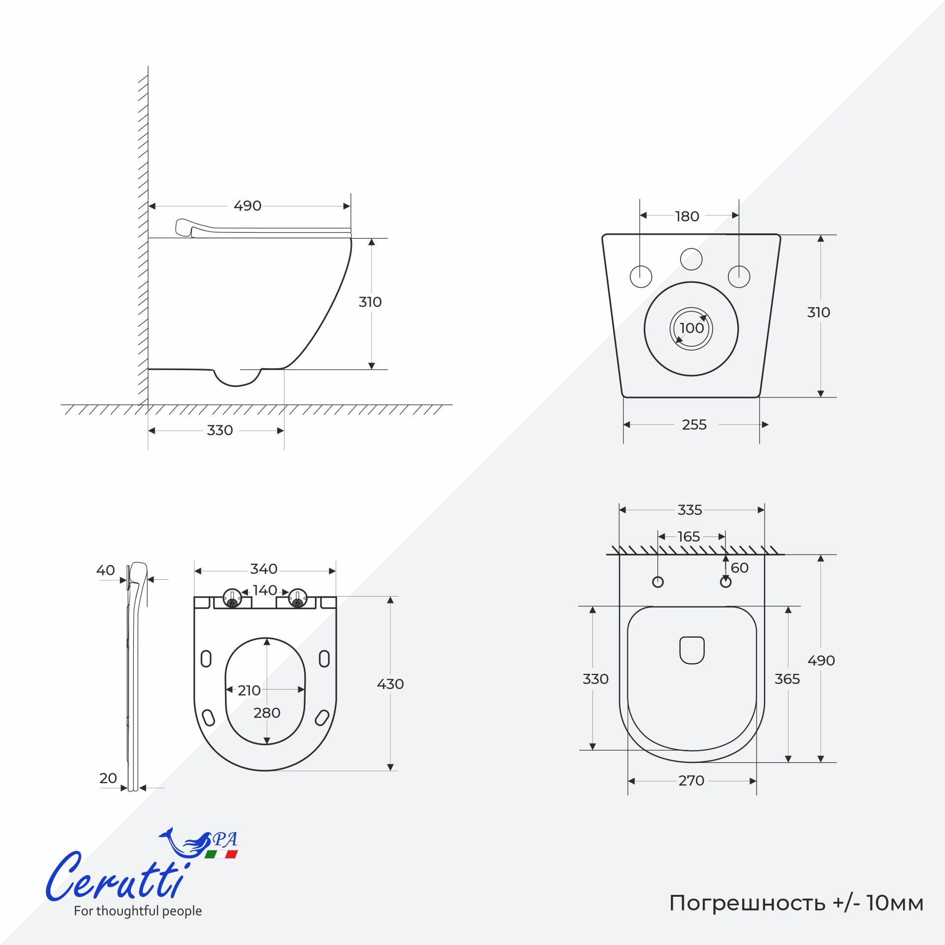 • Компактные размеры: 490x335x340 мм – подходит для большинства ванных комнат.