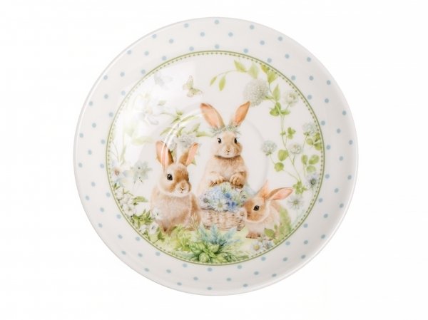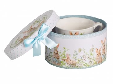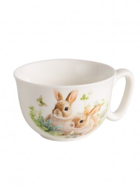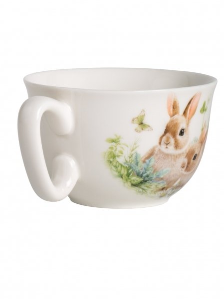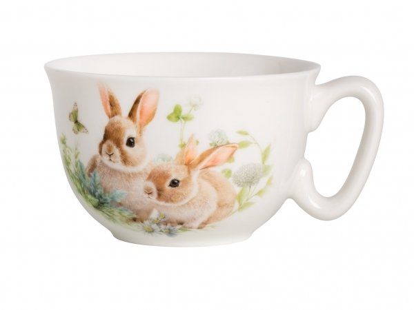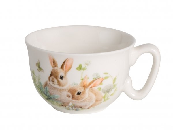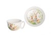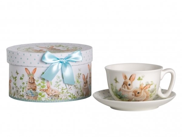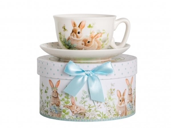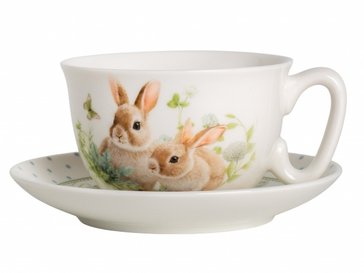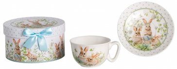 Дизайн чайной пары выполнен в цветочных мотивах с милыми зайчиками, который гармонично сочетается с белым фарфором. Это создает атмосферу уюта и тепла, делая процесс чаепития еще более приятным. Чайная пара поставляется в подарочной упаковке, что делает ее отличным вариантом для подарка.