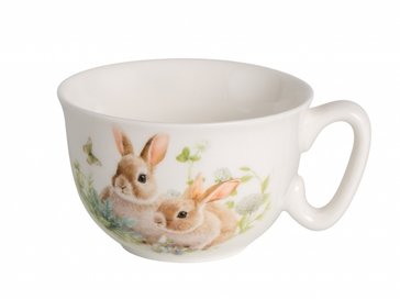 - Пара чайная Зайчики в цветах 300мл фарфор