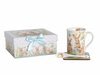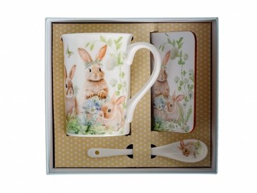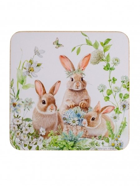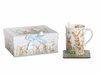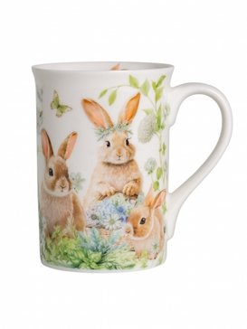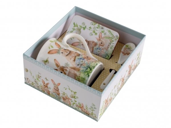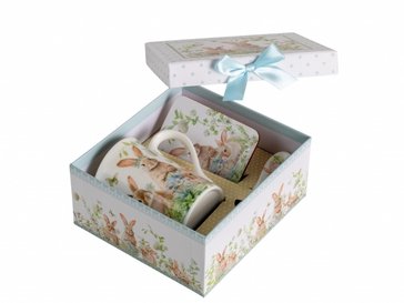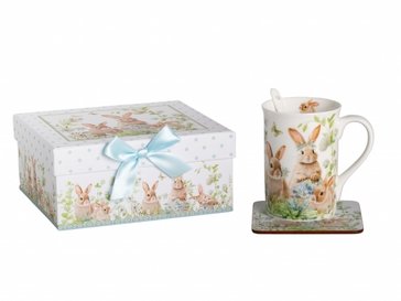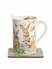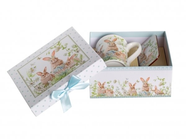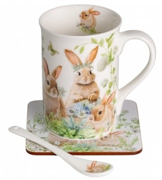 - Кружка Зайчики в цветах 330мл фарфор, подставка пробка